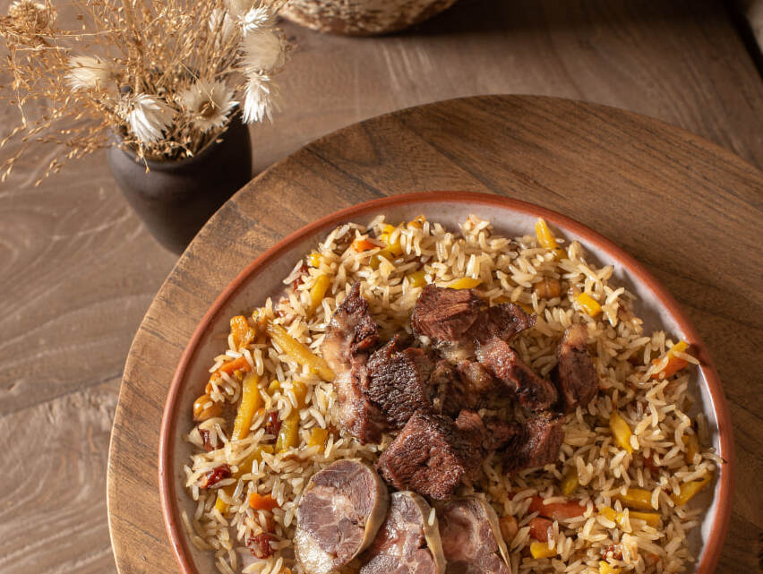 A restaurant-museum in the heart of Tashkent, where authentic artifacts, antique doors, and carved columns create a deeply cultural space. The house specialty is plov, served in a different regional style each day: Tashkent-style, choykhona-style, Bukhara-style, devzira, or chongora ($6 per serving). The menu also includes shurpa ($6) and kulchatoy (ed. note: a small flatbread) (4 pcs – $9), all prepared using traditional recipes with a delicate contemporary touch.