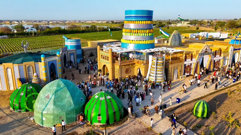 Вместо официальных цифр о тысячах туристов, скажу: мы попали на фестиваль дыни. Иностранные гости сначала осторожно пробовали дыню, а потом просили еще. Мармелад из дыни, коктейли из арбузов, сумки в форме дыни и огненные хорезмские танцы – все это выглядело как настоящий карнавал.