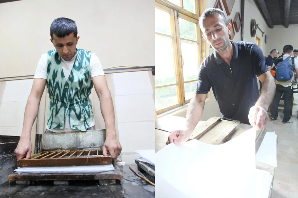 Процесс производства можно увидеть воочию: от размягчения коры тутового дерева до сушки и полировки листов. У посетителей есть возможность самим сделать лист бумаги, купив комплексный билет с мастер-классом (около $2).