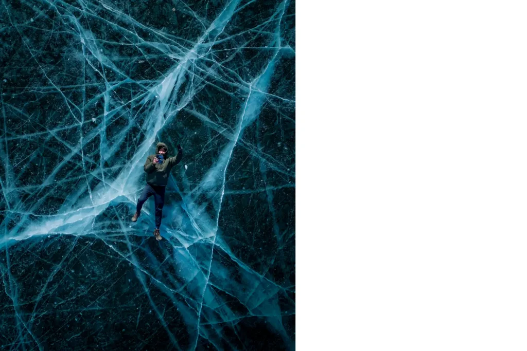 Зимой это место выглядит иначе: замерзшая гладь воды, отвесные скалы и почти полная тишина создают ощущение изолированного пространства. Мне оно часто напоминает Байкал.