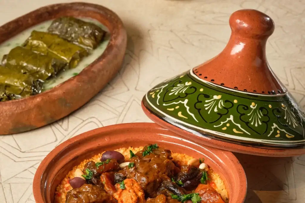 The menu guides guests through the flavors of three regions. Each dish introduces culture through taste and presentation. Guests can try Moroccan duck tagine, dimlama, jiz-biz with barberry, and salmon wrapped in oak leaves, along with signature interpretations of dolma and samsa. Saffron baklava completes the journey.