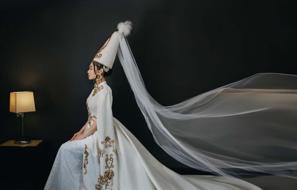 A central moment in the wedding is the kyz uzatuu—the bride’s farewell to her parental home. On this day, she is dressed either in a traditional gown with a tall white shökülö, or in a modern dress adorned with traditional elements. Melancholic, drawn-out songs fill the air, carrying tenderness and sorrow, as tears shimmer in the eyes of mothers and sisters.
