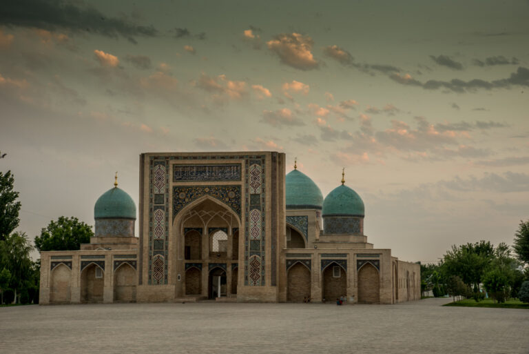 Muqaddas Qur’on muzeyi qayta tiklangan Muyi Muborak madrasasida joylashgan bo‘lib, binoning o‘zi XVI asrga mansub. Bu yerda islomdagi eng muhim qadamjolardan biri — Usmon xalifa Qur’oni (VII asr) saqlanadi. Rivoyatlarga ko‘ra, unda xalifaning qon izlari saqlanib qolgan. Qur’on maxsus harorat va namlik nazorati ostidagi sarkofagda saqlanadi va uning asl nusxa ekanligi YUNESKO tomonidan tasdiqlangan.